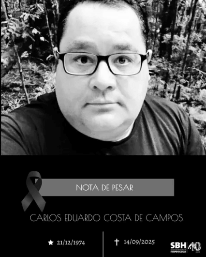 É com imenso pesar que a Sociedade Brasileira de Herpetologia (SBH) recebeu a notícia do falecimento de Carlos Eduardo Costa de Campos, docente do curso de Ciências Biológicas e atual Pró-reitor de Pesquisa e Pós-graduação da Universidade Federal do Amapá (Unifap).